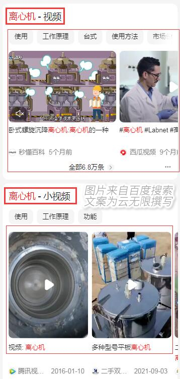 我相信大家對搜索引擎優化已經非常熟悉了,那么你是還在使用傳統的SEO技術優化網站呢?你是否知道現在百度搜索展示結果發生了很大的變化呢?我們就用實例為大家說明一下:大家可以打開百度手機APP,搜索“離心機”
