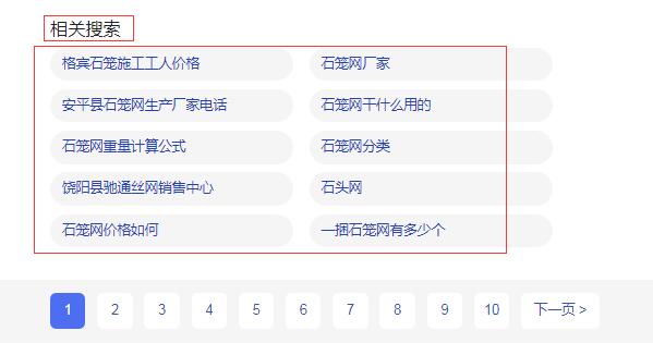 6、產品詞合理配置:產品詞一般是行業詞,通用詞,型號詞,或者二類產品詞;充分使用前綴+產品名稱+后綴,我們拿“石籠網”舉例,可以去百度輸入框輸入該詞,查看下拉列表: